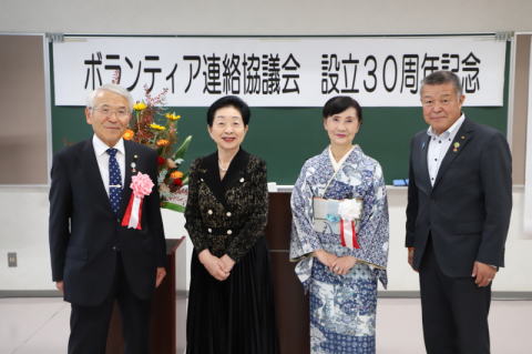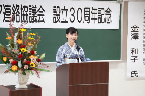 平成7年7月発足から30 年を迎えたボランティア連絡協議会が節目を祝い、日頃から様々な活動に携わっている54名が参加し今後のボランティア活動につなげようと記念事業が行われました。「30 周年そして未来へ」と題し行われた金澤和子氏の講演会では、同協議会が県内唯一のものであること、また地域の担い手やボランティアが不足する中で活動を持続可能なものにするために出来ることは何か、皆で考えていこうと呼びかけられました。また、講演後は参加者らによる交流会を開催、情報交換をしながら親睦を深めました。