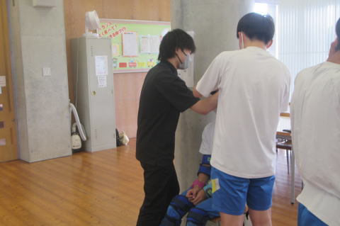 令和7年9月11日に、福原中学校において福祉体験学習が開催されました。3年生19人が障がい者自立支援センターほっとらいふの先生より講話を伺い、その後車イス体験と高齢者疑似体験、視覚障がい者疑似体験を行いました。